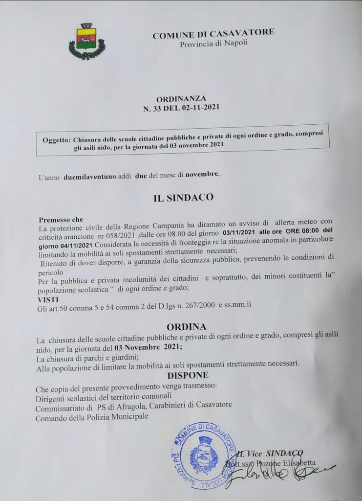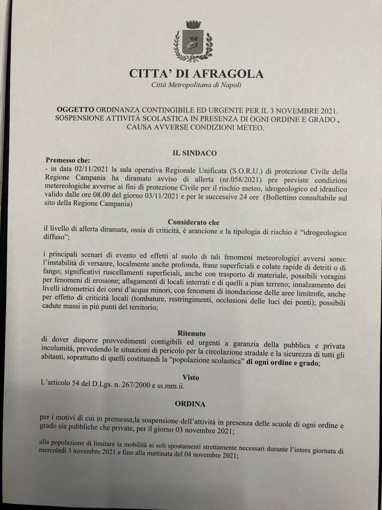 Allerta Meteo sospensione attività didattica per il giorno 3 Novembre, sedi: Casavatore - Ischia - Casoria- Pozzuoli - Giugliano - Arzano- Grumo - Afragola